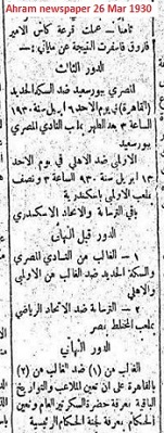 Ahram newspaper on 7 May 1930; Despite competition regulation, no extra time was