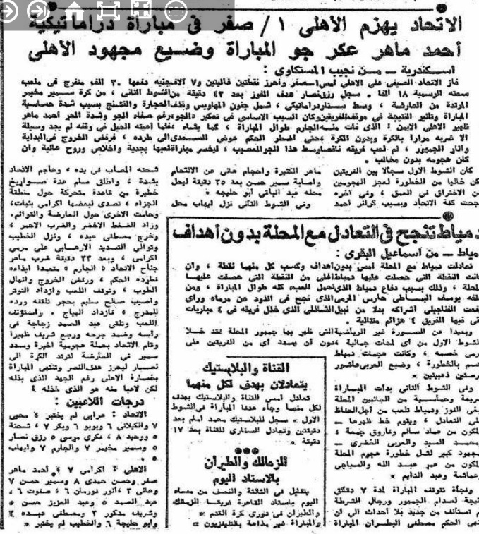 30 Mar 1973 Olympic 1-1 Mahala (Mohamed El-Kass 13") (Mahmoud Abdel Dayem