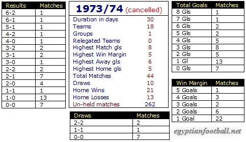 UNFINISHED Stopped after week 5, failed to resume due to shortage of time after 6th of October War and Egypt hosting african cup of nations afterwards and was replaced by October League Cup with all league teams, Zamalek was the champion