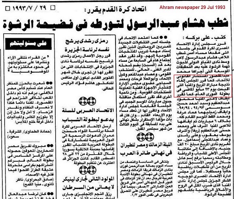 1 Jun 1993 Olympic 1-1 Ahly (Assem Zaghloul 77") (Mohamed Abdel Galil