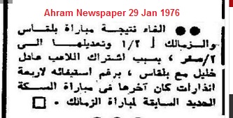 Awarded as 2-0 win for Zamalek due to Participation of Belquas suspended player Adel Khalil