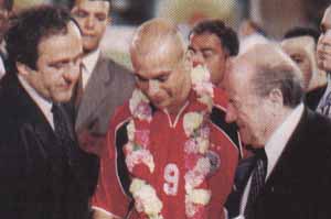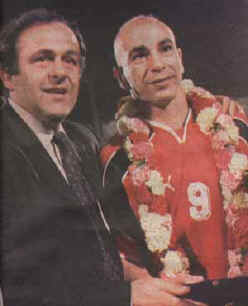 France captain Michel Platini presented Egypt's Hossam Hassan with a souvenir
