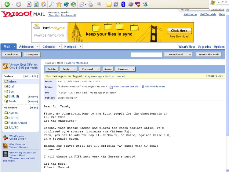 | 173 | 5 Jan 06 | Cairo | Zimbabwe | 2-0 | Friendly | 0 |