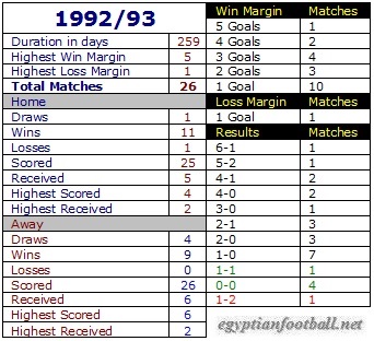 | Zamalek | 26 | 20 | 5 | 1 | 51 | 11 | 45 |